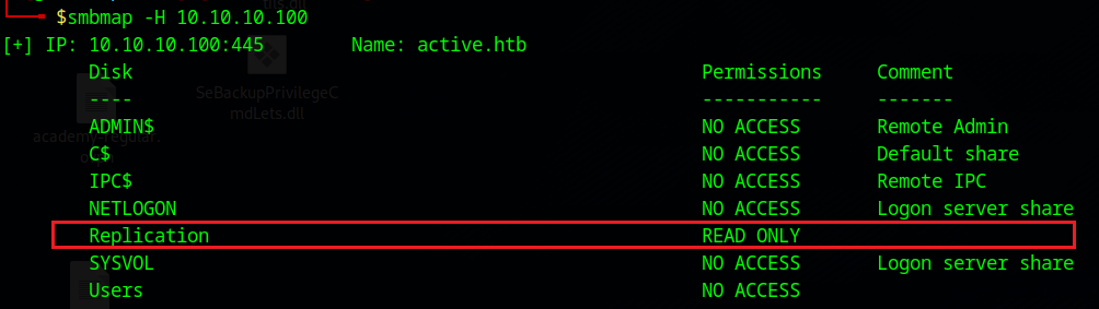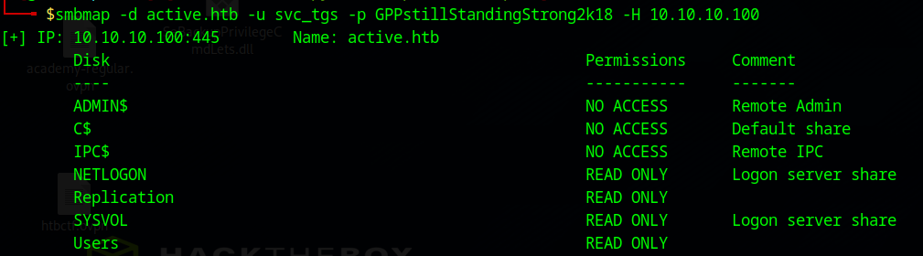 smbmap -d active.htb -u svc_tgs -p GPPstillStandingStrong2k18 -H 10.10.10.100